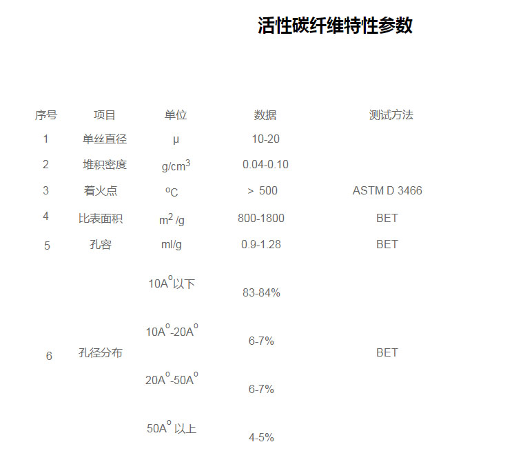 活性碳纖維(ACF)的特性及特性參數