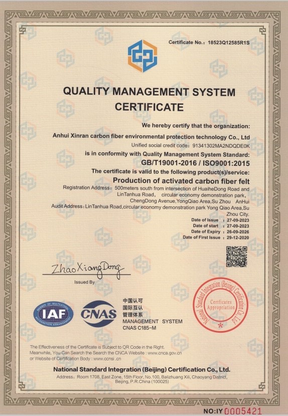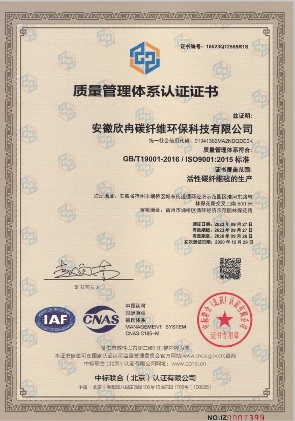 新質量體系認證證書